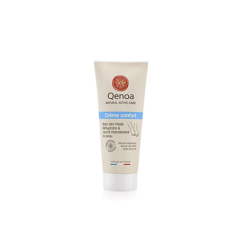 La crème confort Qenoa nourrit et répare intensément les pieds très secs et abimés.
